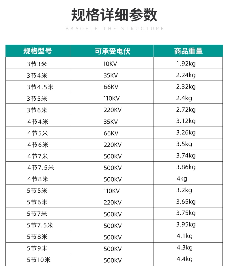 產品規格:1m到6m,10-500kv